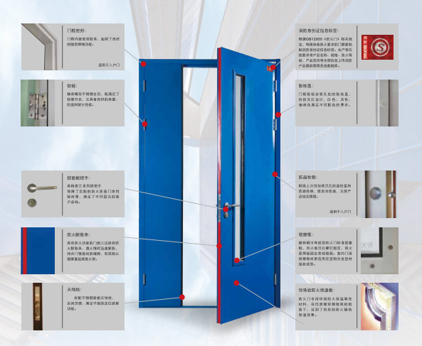 完整性和隔熱性要求的門。它是設(shè)在防火分區(qū)間、疏散樓梯間、垂直豎井等具有一定耐火性的防火分隔物。